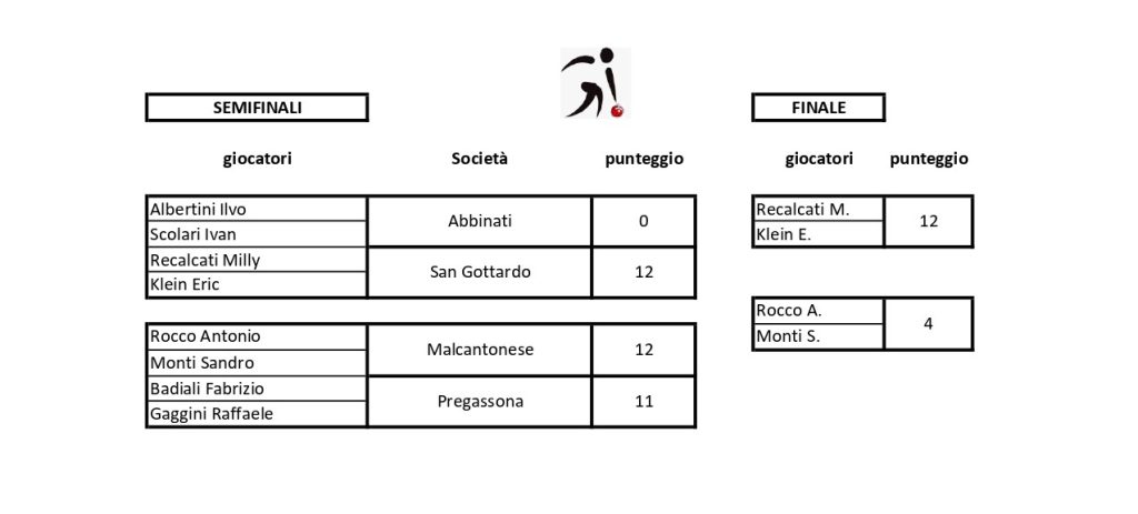 Il percorso compiuto al Centro nazionale sport bocce è stato improntato sull’autorevole sicurezza. Dopo il 12 a 9 nei quarti su Michele Colucci e Gianfranco Larghi della SB Riva San Vitale, in semifinale si sono assicurati il passaggio con un netto 12 a 0 contro i bellinzonesi Ivan Scolari e Ilvo Albertini. Poi hanno smorzato le ambizioni dei bravi malcantonesi Sandro Monti e Antonio Rocco con il punteggio di 12 a 5.