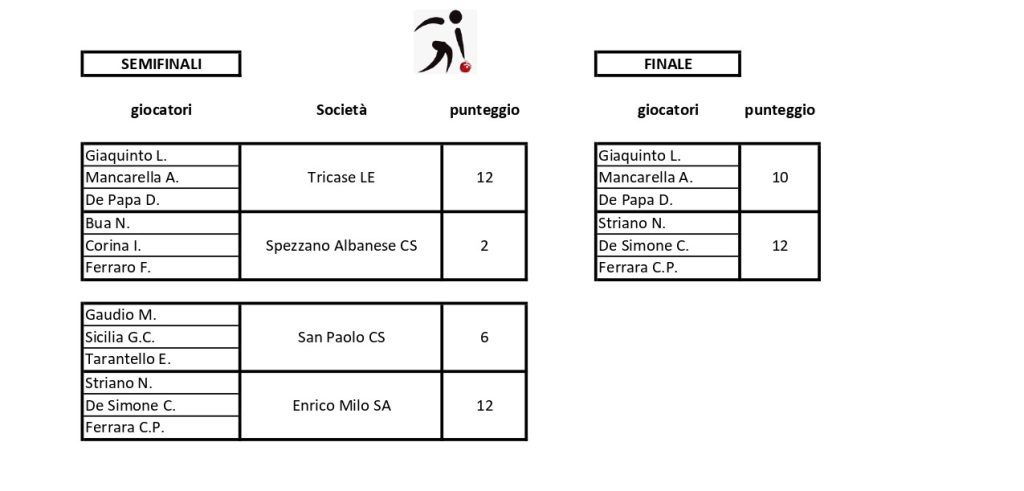 01.11.2024 4°Coppa Migneco – Gara nazionale A B C D terna ad estinzioneA.S.D. Bocc. Montegiordano, Matera MTI vincitori