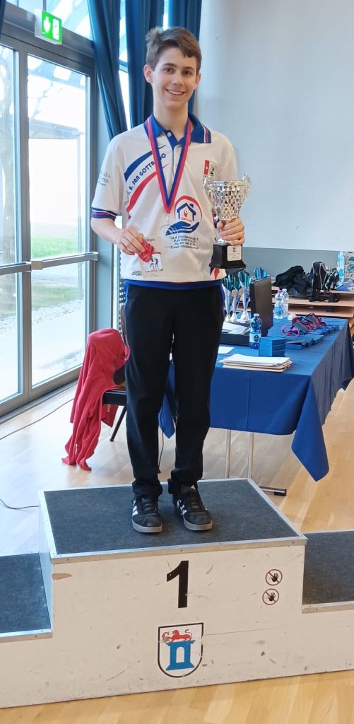 Davide Nicoli (San Gottardo) si è imposto nella categoria più popolosa di promettenti giovani. Molti virtuali scommettitori avrebbero puntato sul suo successo. Davide si era imposto già nel 2023 e nel 2024, anno in cui aveva fatto suo pure il Campionato Svizzero. Si allena con molta costanza, senza trascurare i suoi sempre maggiori impegni scolastici che, comunque, affronta e risolve con altrettanto successo. Il suo Club lo chiama spesso nelle gare a squadre “open” e ciò permette al giovane di acquisire importanti esperienze. Davide ha effettuato un percorso parecchio impegnativo. In semifinale, per esempio, si è trovato di fronte l’ottimo Simone Borsani di Riva San Vitale. Ne è nata una bellissima e pure tirata partita.