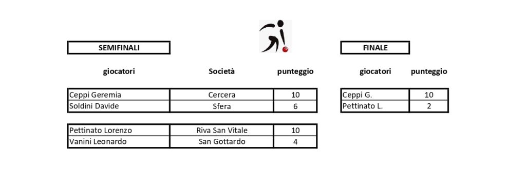 Geremia Ceppi (SB Cercera) è stato autore di una bellissima finale. Ha giocato molto concentrato e altrettanto determinato. I suoi accosti e i suoi tiri non hanno concesso nulla al pur bravo avversario Lorenzo Pettinato (SB Riva San Vitale) che il torneo aveva vinto lo scorso anno.