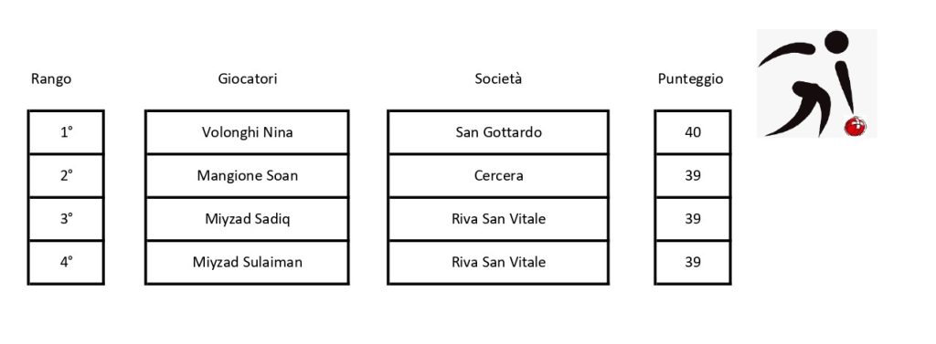 A margine delle tre categorie ufficiali, ai numerosi esordienti che stanno studiando l’abecedario del gioco delle bocce è stata offerta la possibilità di esibirsi nell’accosto al cerchio, nel tiro ai birilli e nei voli nel copertone. Giochi molto apprezzati dai protagonisti, dai genitori e dagli spettatori. La foto dei partecipanti la pubblichiamo sotto.