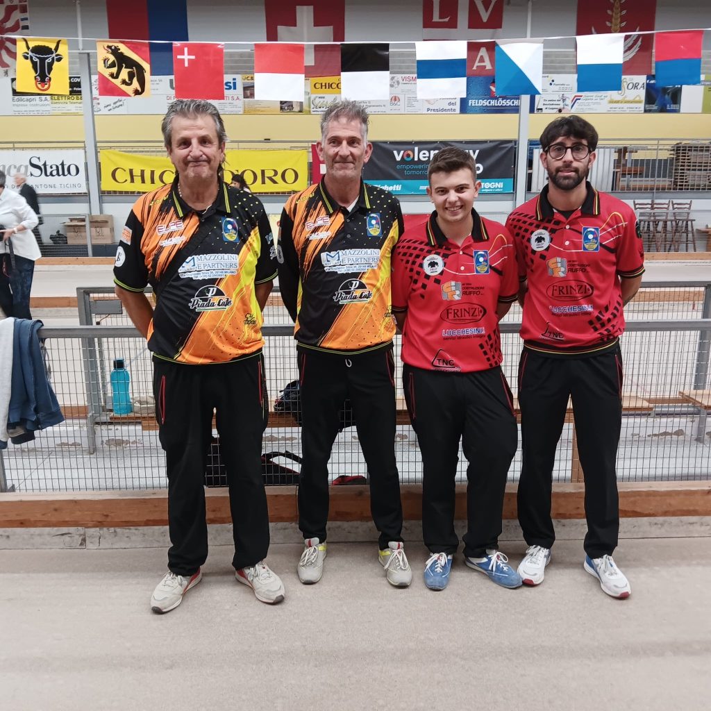 Fronte svizzera, il torneo si è concluso ai quarti di finale. Due le coppie della Stella Locarno che si sono classificate al quinto rango: Rossano Catarin con Marco Casella e Antonio Battaglia con Marcello De Micheli. Quinta pure la formazione di Neuchâtel di Sergio Frigomosca e Robertino Rossi. Rodolfo Peschiera e il rientrante Maurizio Dalle Fratte, assente da molti mesi, sono stati battuti da Turuani e Mazzolini solamente all’ultima giocata: 12 a 11. E se la boccia di un volo di Peschiera non fosse finita sulla rete laterale della corsia …