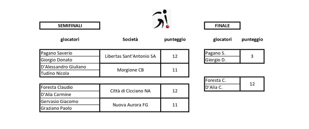06.04.2025 4°Trofeo Gennaro RainoneGara nazionale a coppia A B C D a estinzioneA.S.D. Bocc. A.B.C. Castelpetroso, Castelpetroso ISI vincitori