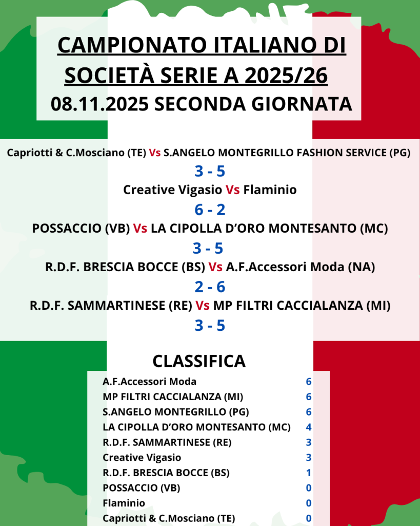 08/11/2025 Campionato Italiano di Società serie A 2025/26 – seconda giornata
