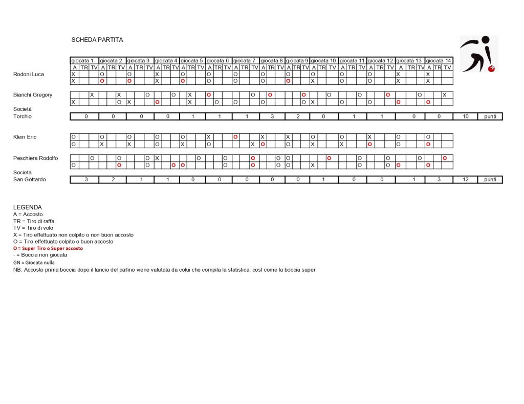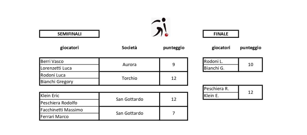 09 – 12.09.2025 Sagra della bocciataGara a coppia punto e volo – FBTIorganizzazione: SB Torchio, BiascaIl podioI finalistiI vincitori Klein E. e Peschiera R.
