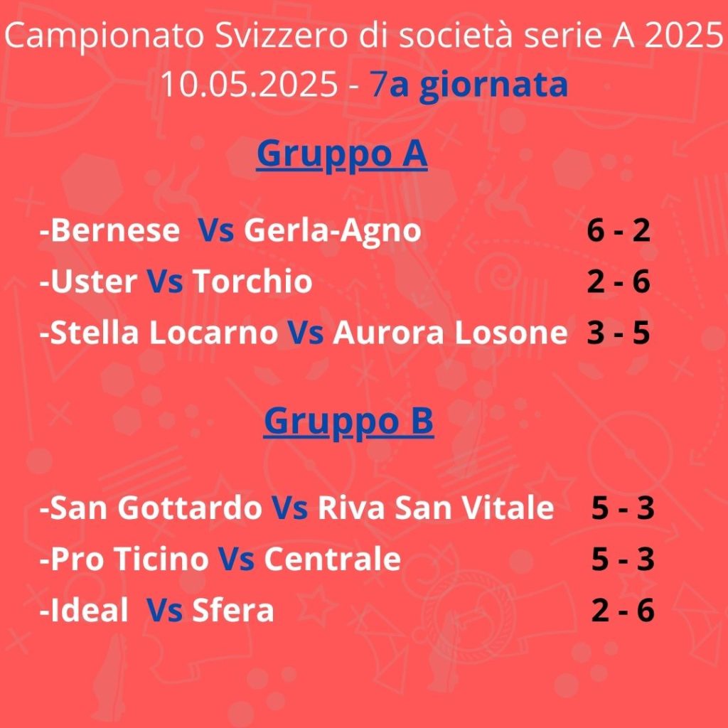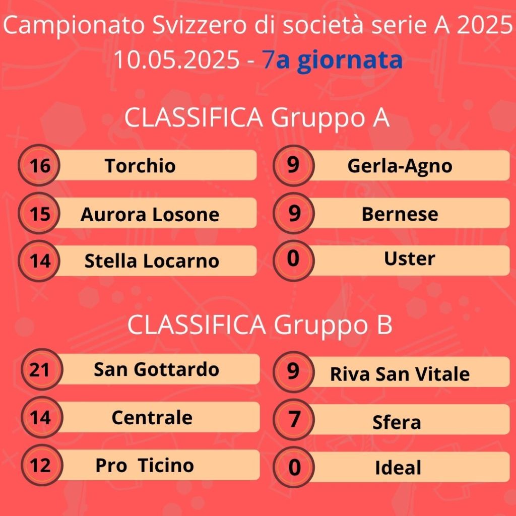Risultati del settimo turno e classifiche aggiornate nel tabellino che pubblichiamo sotto.
