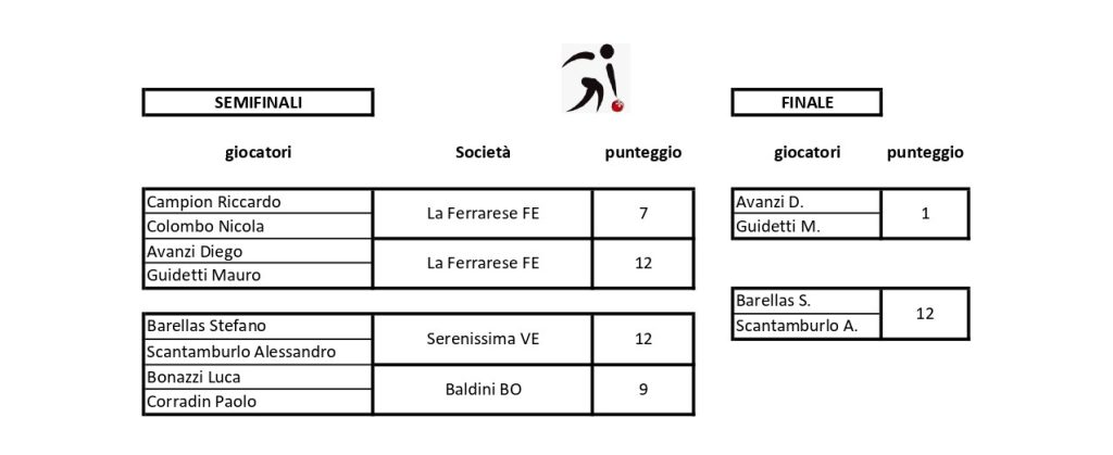 11.05.2025 21°Gran Premio Città di FerraraGara nazionale a coppia A B C D a estinzioneA.S.D. bocciofila La Ferrarese, Ferrara FE