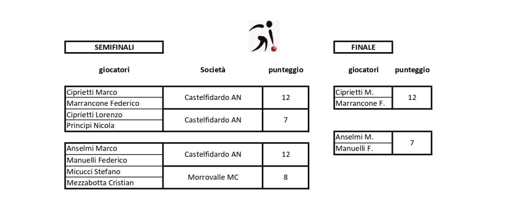12.10.2025 31° Trofeo Comune di CastelraimondoGara nazionale a coppia A B C D a estinzioneA.S.D. Castelraimondo, Castelraimondo MCTerzi e primi classificatiSecondi classificatiI vincitori Marrancone F. e Ciprietti M.