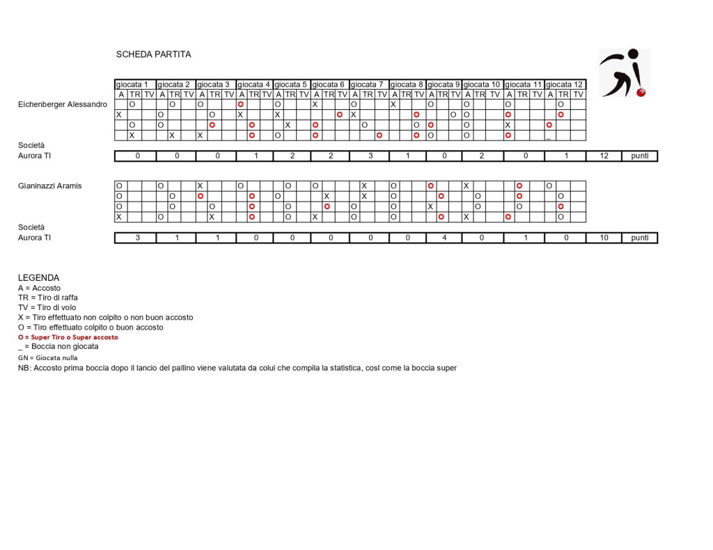 Alla fine l’ha spuntata Alessandro Eichenberger per 12 a 10. Grande festa, ovviamente in casa Aurora. Contento anche il “coach” della nazionale maschile Marco Casella: il Campione Svizzero 2025 è un atleta della rosa rossocrociata e il Vicecampione è pur sempre il Campione d’Europa.