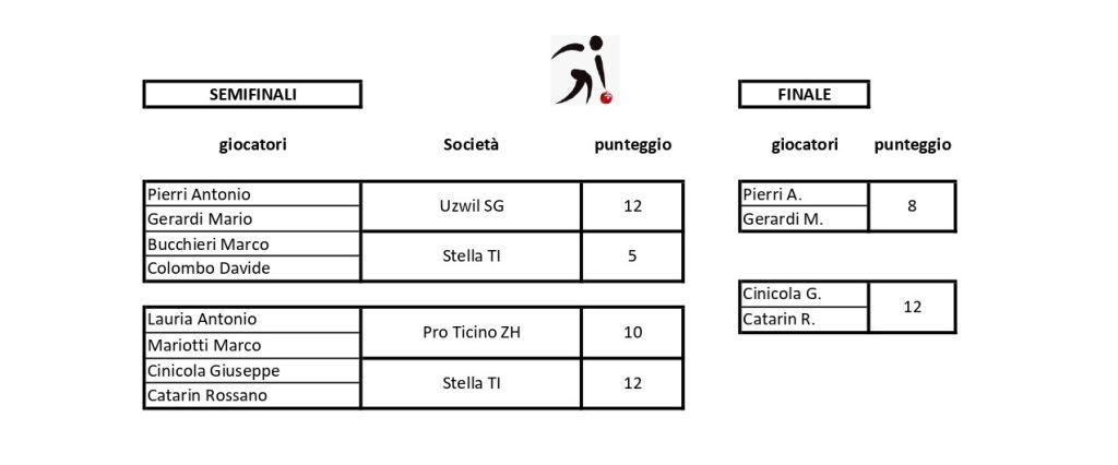 Dopo tutta una serie di piazzamenti di prestigio, Rossano Catarin e Giuseppe Cinicola hanno finalmente ottenuto il primo successo del 2025. Lo hanno ottenuto nel “Gran Premio d’estate”, il torneo regionale a coppie organizzato dal Boccia Club Dietikon (Federazione di Zurigo). È stata una lunga rincorsa per la formazione della Stella Locarno. Una lunga rincorsa che ha premiato la determinazione di Rossano Catarin e la dedizione di Giuseppe Cinicola che ha onorato come pochi gli impegni agonistici ovunque essi si siano svolti.
