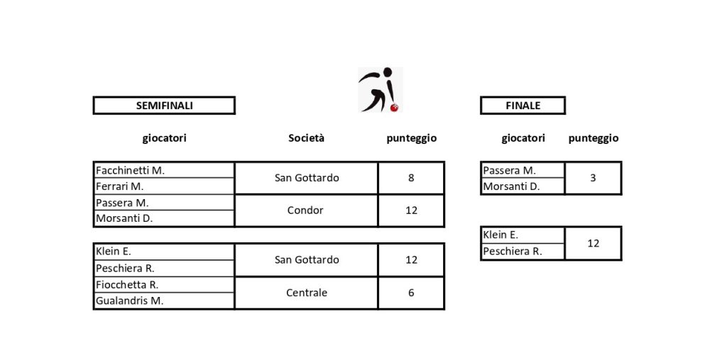 19-23.08.2024 82° Campionato Ticinese punto e volo – Gara a coppie FBTISB Comano, Comano Il PodioI vincitori: Peschiera R. e Klein E.Secondi classificati: Morsanti D. e Passera M.