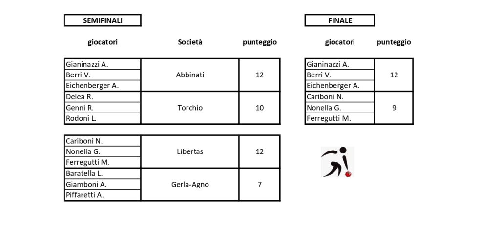 Ha vinto Aramis Gianinazzi con Alessandro Eichenberger e Vasco Berri. Hanno superato in finale la formazione della Libertas di Camorino di Mirko Ferregutti e dei giovanisimi (20 anni) Numa Cariboni e Giona Nonella.