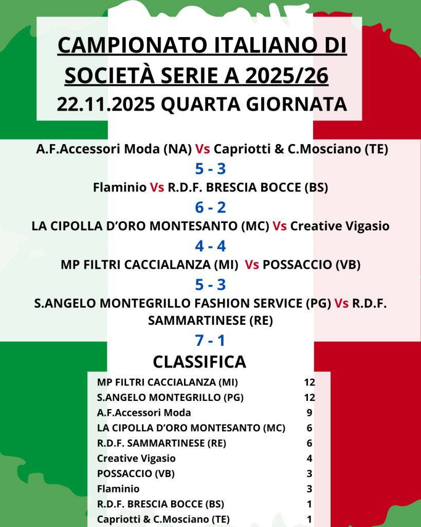 22.11.2025 Campionato Italiano di Società serie A 2025/2026 – quarta giornataS. Angelo MontegrilloCaccialanza
