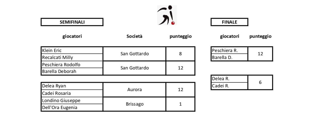 La coppia mista della San Gottardo ha concesso il bis! Lo scorso anno si era imposta per la prima volta nel Campionato Ticinese “Lui&Lei” interrompendo la serie di tre successi consecutivi di Laura Baratella e Luca Rodoni. Quest’anno Deborah e Rodolfo si sono ripetuti. Il risultato parziale dopo le prime cinque edizioni del torneo è ancora di 3 a 2 in favore degli abbinati. Ma le prossime sfide promettono bene …avversari permettendo, ovviamente. Prima di conquistare le medaglie d’oro, i futuri vincitori si sono dovuti confrontare con l’altra formazione del medesimo Club, i loro amici e partner Milly Recalcati ed Eric Klein. Il risultato è stato di 12 a 8, il che significa che la partita è stata aperta e per nessuna ragione addomesticata. Nel frattempo, sulla corsia accanto del Bocciodromo di Biasca, Rosaria Cadei e Ryan Delea infliggevano un severo 12 a 1 ai brissaghesi Eugenia Dell’Oro e Giuseppe Londino, la bella sorpresa della giornata. Rosaria Cadei si è riconfermata in piena forma dopo il fine settimana precedente che le aveva reso una medaglia d’oro con Rossano Catarin e una d’argento nel Campionato Svizzero individuale. Con il partner Ryan Delea, la coppia dell’Aurora rappresentava un’importante insidia per i chiassesi della San Gottardo. Invece Deborah e Rodolfo hanno concesso solo 6 punti ai giustamente ambiziosi avversari. Al quinto rango – non male, essendoci in palio un titolo nazionale – si sono classificati Moira Morniroli e Riccardo Ballinari (Centrale), Sandra Bettinelli e Michele Fontana (Riva San Vitale), Alice Bernaschina con Claudio Mombelli (Ideal) e gli abbinati Anna Giamboni con Tiziano Catarin (Gerla-Agno/Stella Locarno).