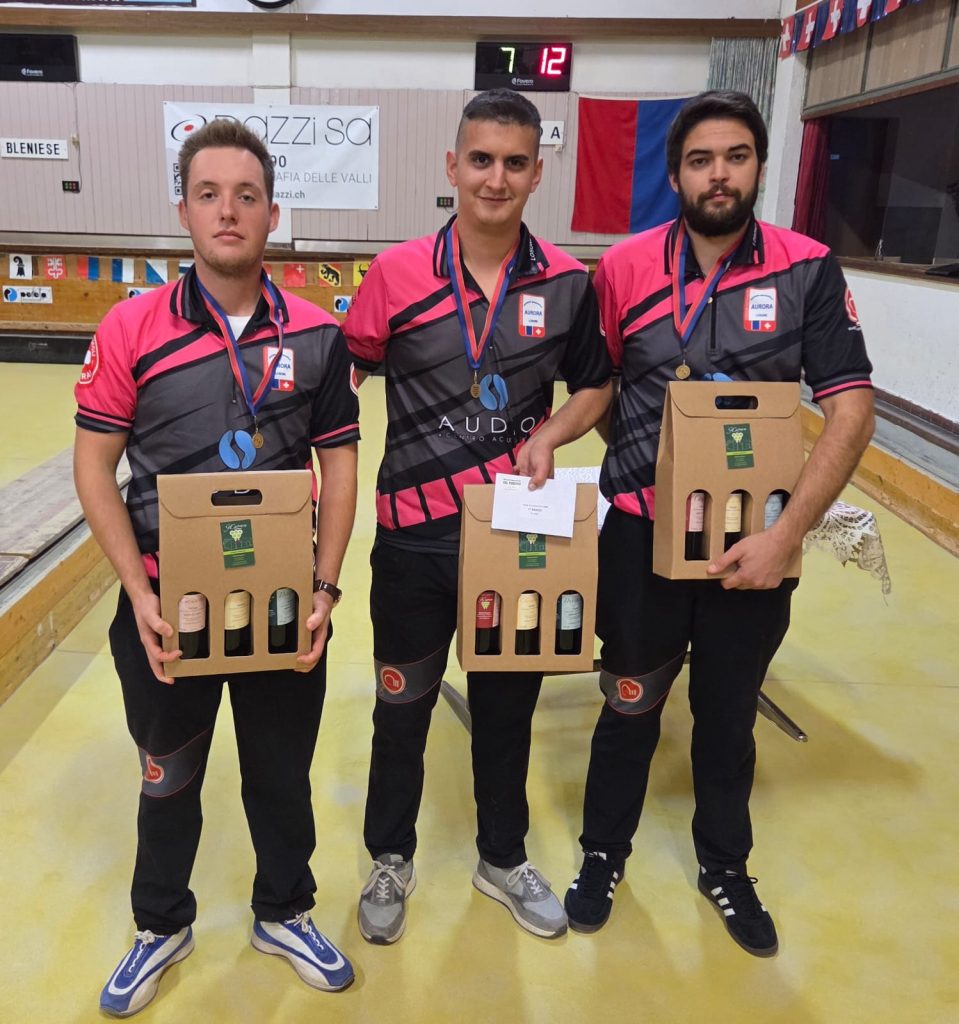 Quella di Aramis Gianinazzi, Vasco Berri e Alessandro Eichenberger era la terna assolutamente favorita tra la quarantina di quelle che si erano iscritte al Campionato Ticinese della specialità. È un mix ideale per le caratteristiche dei singoli giocatori. Alessandro all’accosto, Vasco centroterna e Aramis al tiro e a dirigere il gioco. Ma il supplemento di valore della formazione è che ognuno di loro, in caso di necessità, è in grado di assumere responsabilità diverse. Non per nulla Alessandro è il Campione Svizzero in carica della disciplina individuale, Aramis è il Campione d’Europa e Vasco, con la vittoria di domenica scorsa, ha firmato un “triplete” che riesce soltanto ai veri campioni. In questo 2025 il giovane losonese ha vinto il titolo ticinese nelle tre specialità individuale, coppia e terna. Oltre a qualche altro successo e a qualche altro buttato alle ortiche per …eccesso di spensieratezza.