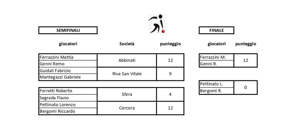 26-31.05.2025 GP La Gerla-Agno Gara a coppia cat. B/C circuito FBTIorganizzazione: SB La Gerla-Agno, LuganoIl podioI finalistiI vincitori Ferrazzini M. e Genni R.