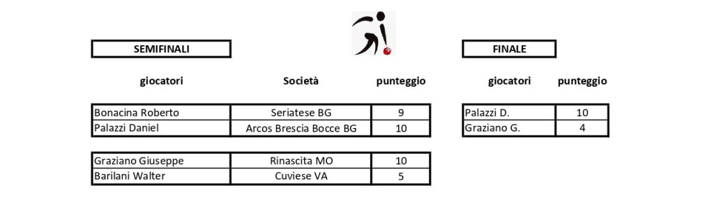 27.04.2025 4°Trofeo GaravagliaGara nazionale individuale imposta A (ranking)Verdellese A.S.D. Bocc., Verdello BGIl vincitore Palazzi D.