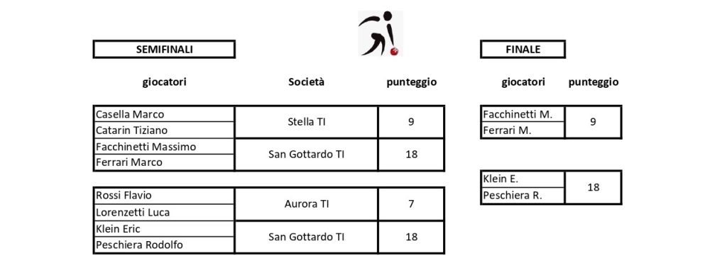 Altro netto successo collettivo della San Gottardo. Altra netta vittoria di Eric Klein e Rodolfo Peschiera che in finale hanno battuto nettamente i compagni di Club Marco Ferrari e Massimo Facchinetti. È successo sabato e domenica al “Platano” di Quartino, la bellissima nuova struttura che ha ospitato il “Gran Premio ITS”, la gara nazionale a coppie organizzata dalla Stella Locarno. Il Club di Chiasso vince ovunque e in tutti i tipi di torneo. Gli appassionati delle statistiche potranno ricostruire vittorie e sconfitte dell’anno in corso esaminando l’elenco dei tornei pubblicati dai siti della FSB e della FBTi. Certo è che la solidità e la regolarità del Club trasparirà nettamente. Qualche rammarico, certo. I titoli nazionali individuali e a coppie sfuggiti nelle volate… Ma la forza della Società appare in tutto il suo valore. Rispetto alle consorelle ha un punto di forza in più. La luce di Rodolfo Peschiera illumina da sola il firmamento rossoblù. Ma i senatori stanno dando tuttora il meglio di loro stessi: Eric Klein, Marco Ferrari, Massimo Facchinetti e nei tornei a squadre Giacomo Lucini e Valentino Cardinale senza dimenticare i giovanissimi Under 15 che scalpitano e che garantiscono un futuro a tinte rosee. Il torneo di Quartino è stato riproposto dalla Stella con la formula dell’inseguimento. Individuale ai 6 punti, altro singolo agli 11 e infine la coppia ai 18. Il Club di Locarno si sforza di innovare, pur modestamente, un calendario sempre più desueto. E i riscontri raccolti tra i protagonisti e tra gli appassionati sono stati davvero molto positivi. Detto dell’egemonia della San Gottardo, annotiamo le prestazioni molto positive dei giocatori della Stella con Tiziano Catarin e Marco Casella terzi, Giuseppe Cinicola e Rossano Catarin quinti a pari merito con Enrico Addonizio che ha giostrato con Marco Regazzoni. Bene pure l’Aurora di Losone, sul podio con Flavio Rossi e Luca Lorenzetti.
