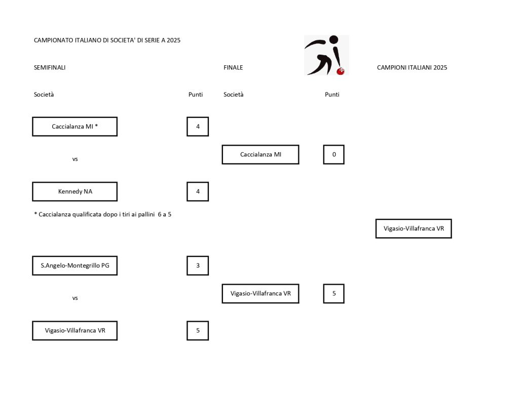 28-29.06.2025 Campionato Italiano di società serie A 2025 – “Final Four”Bocciodromo comunale Campobasso, Campobasso CBCaccialanza MI (seconda classificata)Vigasio-Villafranca MI (Campioni Italiani 2025)