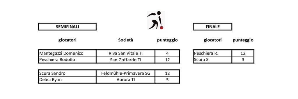 Si sono classificati al quinto rango Aramis Gianinazzi (Aurora Losone), Eric Klein (San Gottardo), Walther Di Giacomantonio (Bernese) e Tiziano Catarin (Stella Locarno).