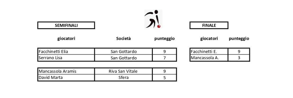Oltre al Campionato individuale della Regione 3, la Federazione Ticino ha organizzato un torneo giovanile denominato “Gran Premio Futuro” diviso nelle tre classiche categorie Under 18, U15 e U12. Sono state gare bellissime seguite da molti appassionati oltre che, ovviamente, da tutti i genitori. Tutti riuniti nel nuovo apprezzatissimo impianto di Quartino. I tornei sono stati dominati da giocatori delle tre scuole bocce del Mendrisiotto. Nella categoria U18 Geremia Ceppi (Cercera) ha sconfitto in finale Federico Giacalone della San Gottardo. Tra gli U15 Davide Nicoli ha battuto all’ultimo tiro il compagno del Club di Chiasso Francesco Benetti. Terzi Dakota Schärer (Riva San Vitale) e Simone Maggi, pure lui della San Gottardo. Ennesima sfida finale tra Elia Facchinetti (San Gottardo) e Aramis Mancassola (Riva San Vitale) tra i più piccoli con sul podio pure Lisa Serrano (San Gottardo) e Marta David, giovanissima della Sfera di Lugano. La trentina di iscritti in questa manifestazione giovanile ha dimostrato di avere ottime qualità. Il lavoro dei monitori farà maturare frutti davvero molto interessanti e la “Pagina delle bocce” dedicherà prossimamente un ampio servizio.