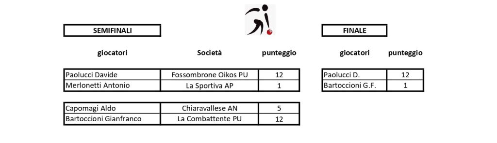 30.11.2025 1°Memorial Rino CasavecchiaGara nazionale individuale A B C D a estinzioneCagliese A.S.D. Bocciofila, Cagli PUIl vincitore Paolucci D.